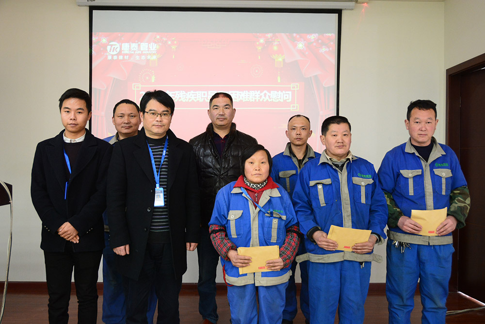 2019.02迎新年 送溫暖-康泰集團(tuán)向殘疾職工、家庭困難職工發(fā)放慰問金春節(jié)將至,溫暖送來。為傳承扶貧濟(jì)困的傳統(tǒng)美德,表達(dá)公司對殘疾職工和家庭困難職工的關(guān)懷和照顧,讓他們感受到康泰大家庭的溫暖,1月27日上午,康泰集團(tuán)開展了“殘疾職工、家庭困難職工慰問活動”??堤┘瘓F(tuán)工會主席吳彬向15位殘疾職工、家庭...閱讀人數(shù):7684