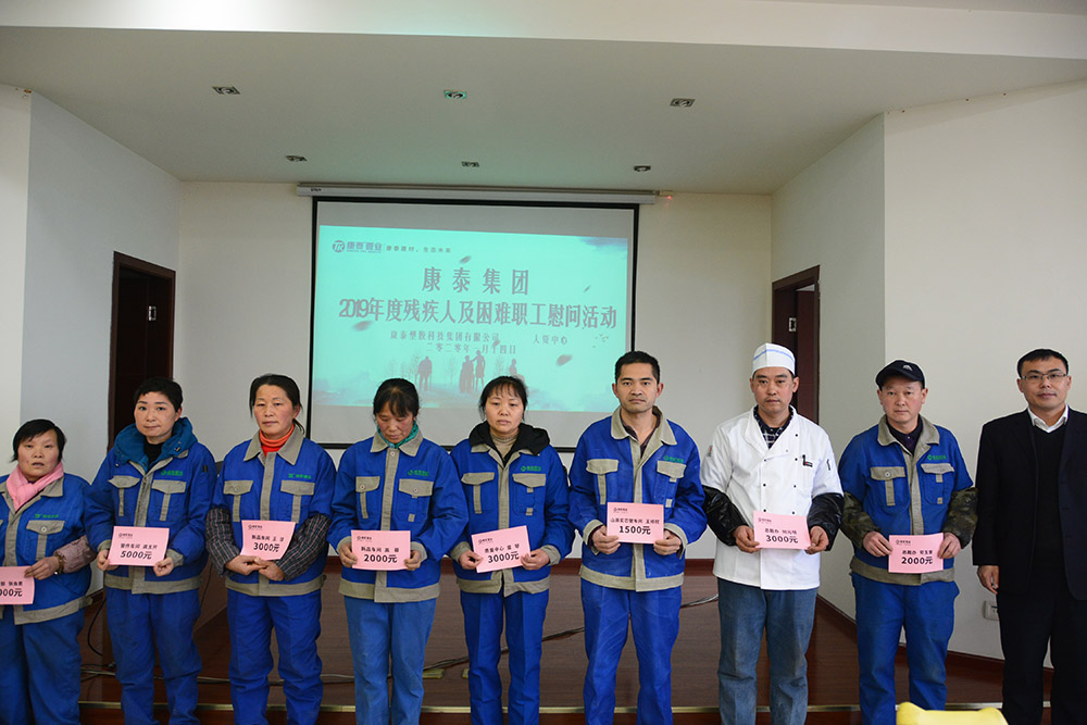 2020.01讓員工感受家的溫暖-康泰集團(tuán)向殘疾及困難職工發(fā)放慰問金圖為慰問現(xiàn)場“1500元、2000元、3000元、5000元……總計(jì)42500元”。這是1月14日,康泰集團(tuán)向17名殘疾及困難職工發(fā)放慰問金活動現(xiàn)場。隨著一年一度新年的到來,康泰集團(tuán)再次拿出專項(xiàng)資金,表達(dá)公司對殘疾職工和家庭困難職...閱讀人數(shù):7870 -