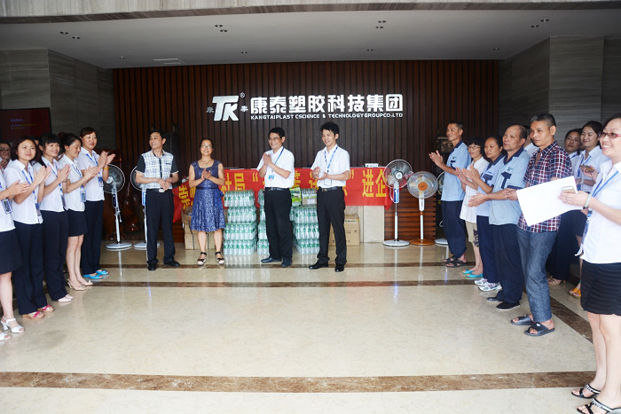 8月7日下午,崇州市人力資源和社會保障局副局長、工會主席李茂清帶領局“送清涼”慰問組,來到康泰塑膠科技集團有限公司,工會主席吳彬及人事行政中心呂旭梅經理接待了慰問組。人社部門為公司職工送上了電風扇、礦泉水、和防暑物品,并將有關勞動安全、工資待遇等內容的人社政策宣傳資料送到職工手中,使職工進一步了解有關政策法規(guī),依法主動保護自身合法權益。