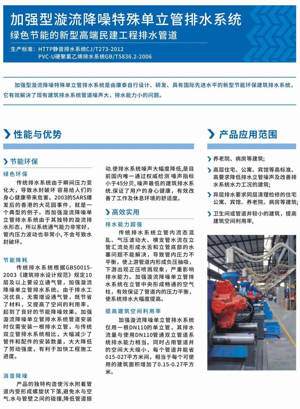 加強(qiáng)型漩流降噪特殊單立管排水系統(tǒng)是由康泰自行設(shè)計、研發(fā)、具有國際先進(jìn)水平的新型節(jié)能環(huán)保建筑排水系統(tǒng)。它有效解決了現(xiàn)有建筑排水系統(tǒng)管道噪聲大,排水能力小的問題。